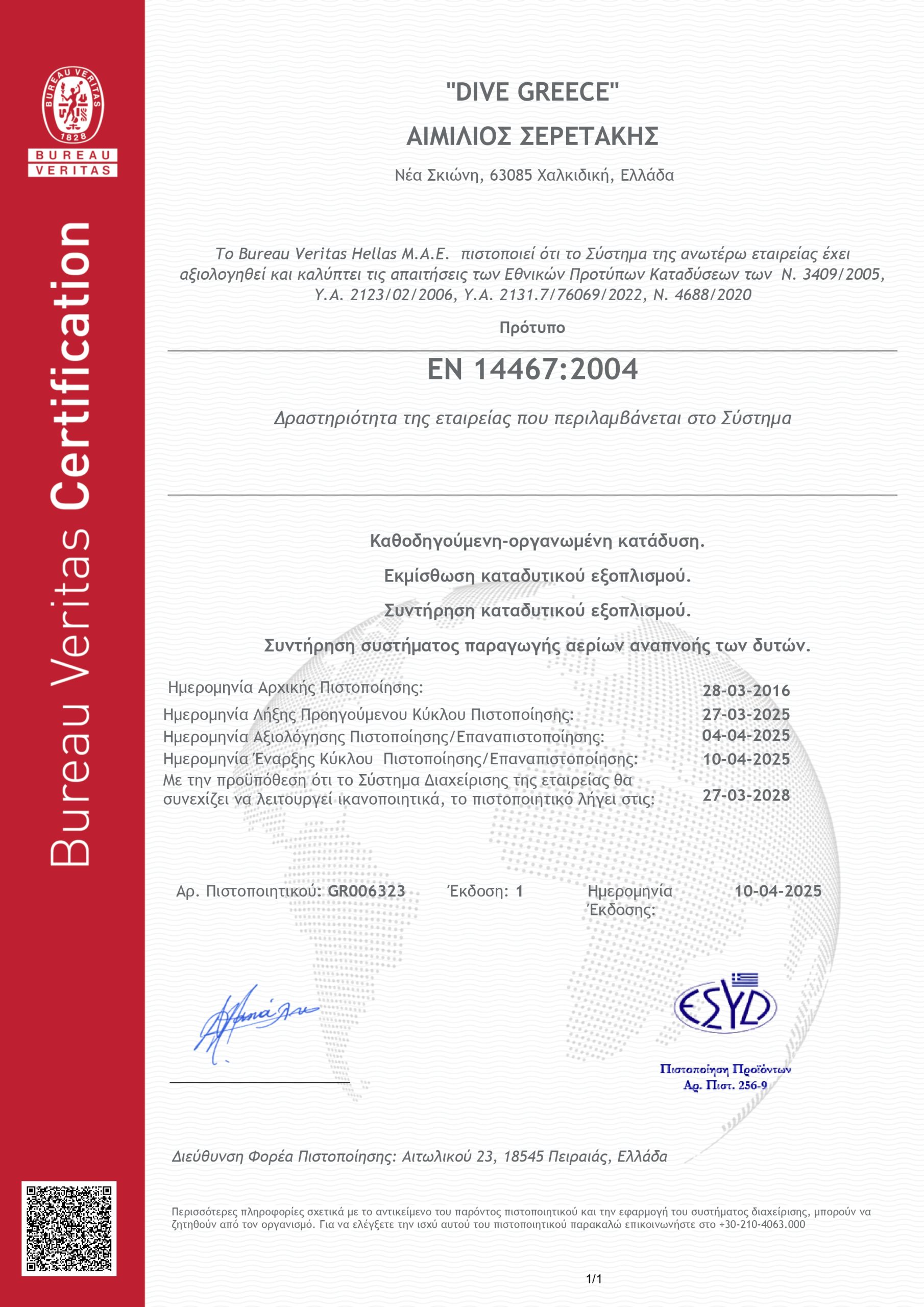 Συμμορφωνόμαστε με την ελληνική νομοθεσία και τις οδηγίες των κατασκευαστών (Cressi, Coltri κ.λπ.) για να διασφαλίζουμε ότι όλος ο εξοπλισμός συντηρείται τακτικά, από τις φιάλες μέχρι τα αναπνευστήρες. Ενημερώνουμε συνεχώς τον εξοπλισμό μας για να σας προσφέρουμε την καλύτερη και ασφαλέστερη εμπειρία.