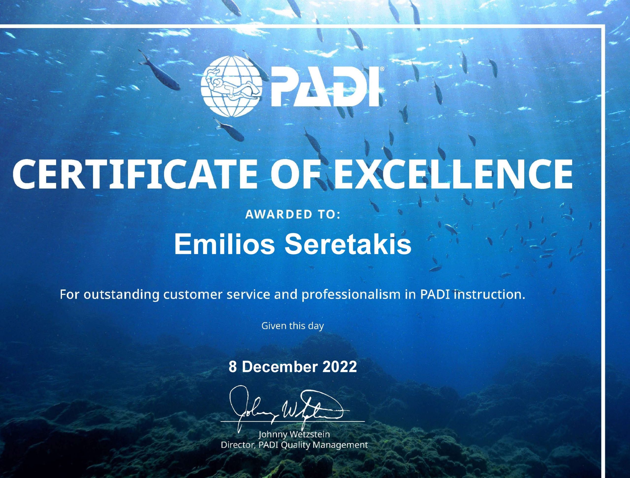 Η αποστολή μας, βασισμένη σε μια φιλοσοφία με επίκεντρο τον δύτη, είναι να κάνουμε κάθε κατάδυση μια αξέχαστη εμπειρία. Αφιερώνουμε σημαντικούς πόρους για να σας προσφέρουμε την καλύτερη δυνατή αξία και να κάνουμε την αυτόνομη κατάδυση πιο προσιτή, εμπνέοντας τους δύτες να ολοκληρώσουν την εκπαίδευσή τους PADI και να υιοθετήσουν τον «τρόπο ζωής της κατάδυσης». Επιπλέον, αναλαμβάνουμε την ευθύνη για τα σημεία κατάδυσης, ενεργούμε για την προστασία των ωκεανών και των τοπικών οικοσυστημάτων και προσπαθούμε να ελαχιστοποιήσουμε τις περιβαλλοντικές μας επιπτώσεις.